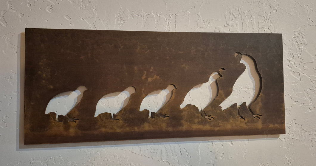 Rustic Corten Quail Family Wall Art.