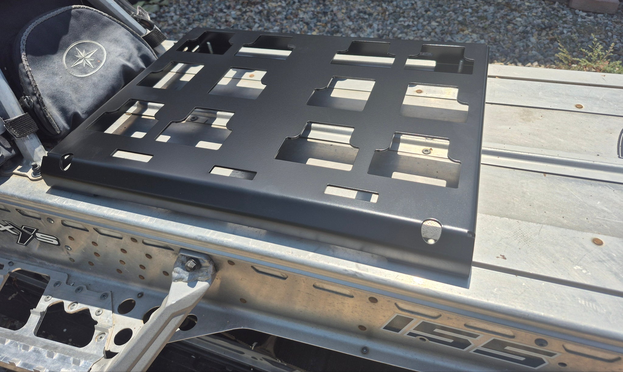 Built to fit on 2011+ Polaris snowmobiles with the T-Slot tunnels (12-5/8" spacing), or use as a universal mount on a 4-wheeler, tractor, flatbed, etc.